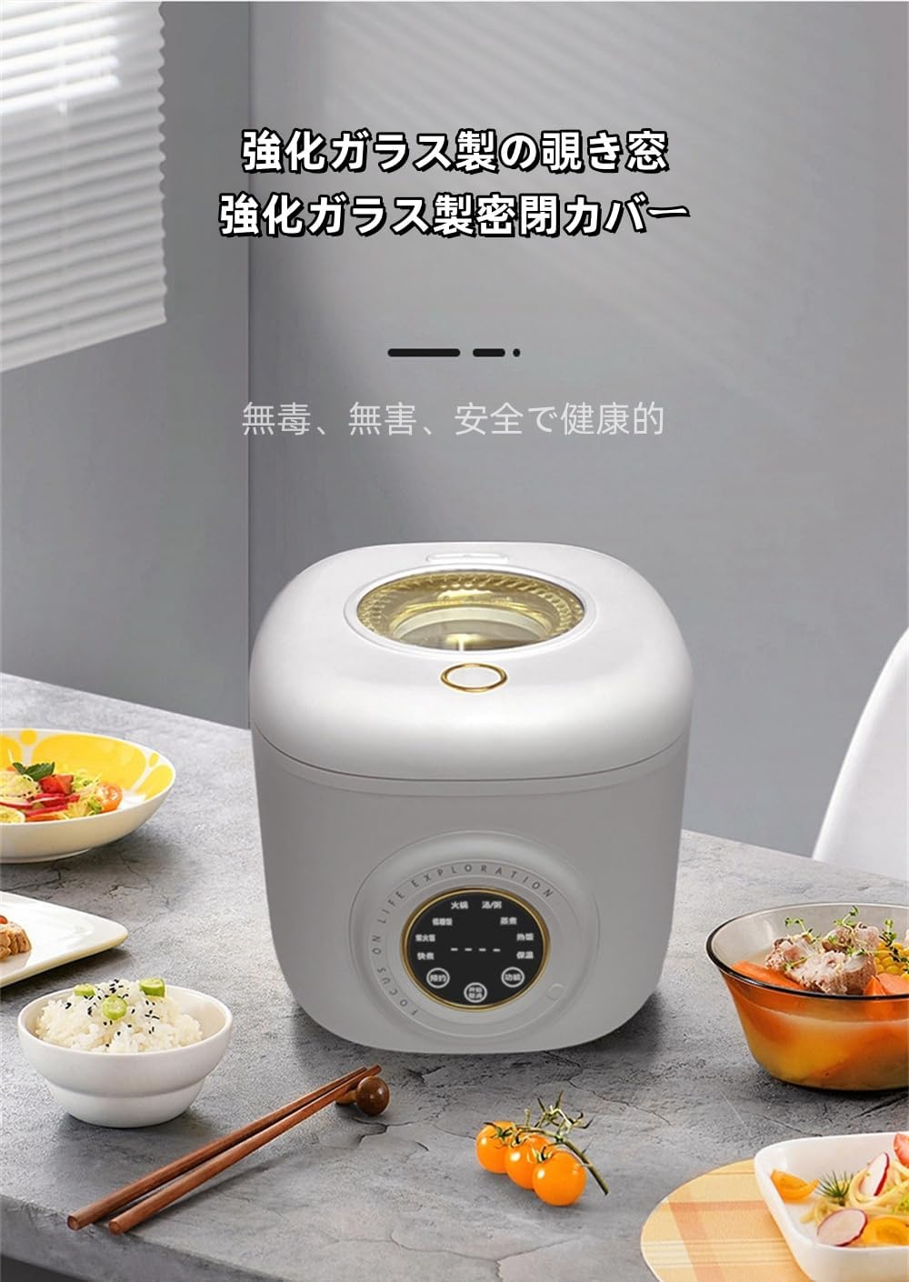 蒸しモードを搭載しており、蒸し野菜や蒸し鶏などの調理が可能です。炊飯と蒸し料理の同時調理にも対応しているため、一人暮らしでおかずも一緒に準備したい方に便利です。タッチパネルのワンボタンタッチ機能で簡単に操作できます。