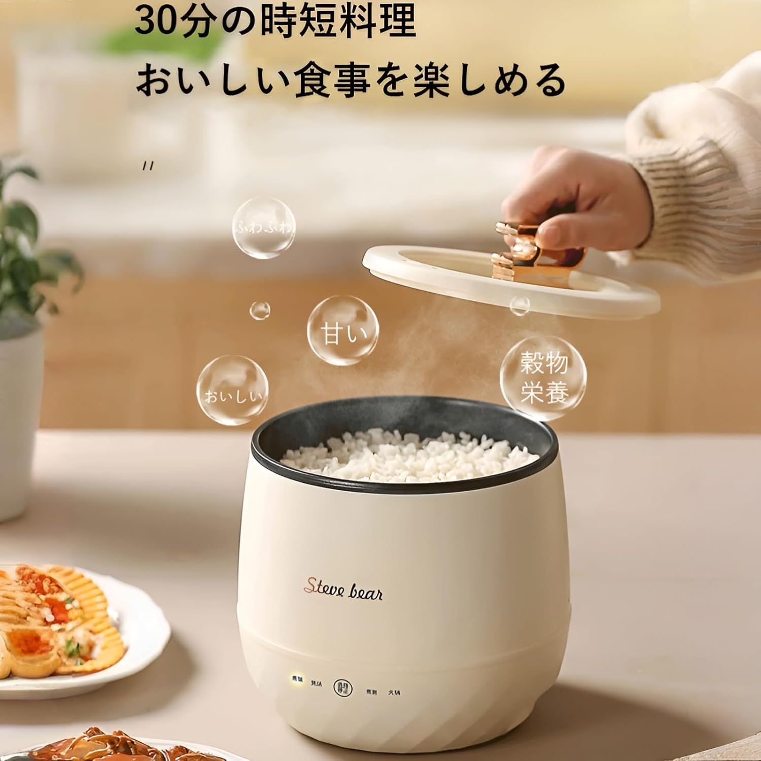 Arkloveミニ炊飯器は、350Wの省電力マイコン式で3.0合の少量炊きに特化した、一人暮らし・二人暮らし向けの実用的な炊飯器です。玄米・雑穀米・おかゆ・スロークックまで対応する5つの調理モードとセラミックノンスティック内釜の組み合わせは、健康志向のユーザーにとって十分な機能性を備えています。一方で、圧力IHのような本格的な炊き上がりや早炊き機能を求める方には物足りないため、用途に合った選択が重要です。