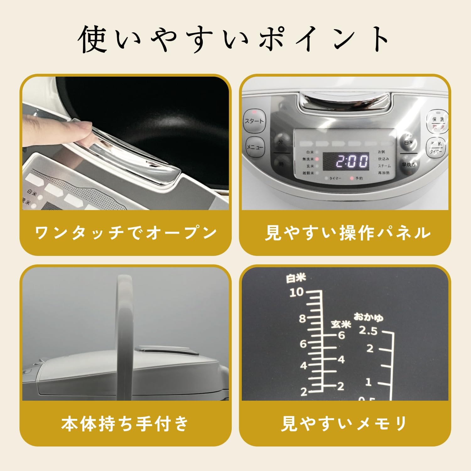 - ✓ 5人以上の大家族やまとめ炊き派(10合の大容量で一度に大量の米を炊ける)