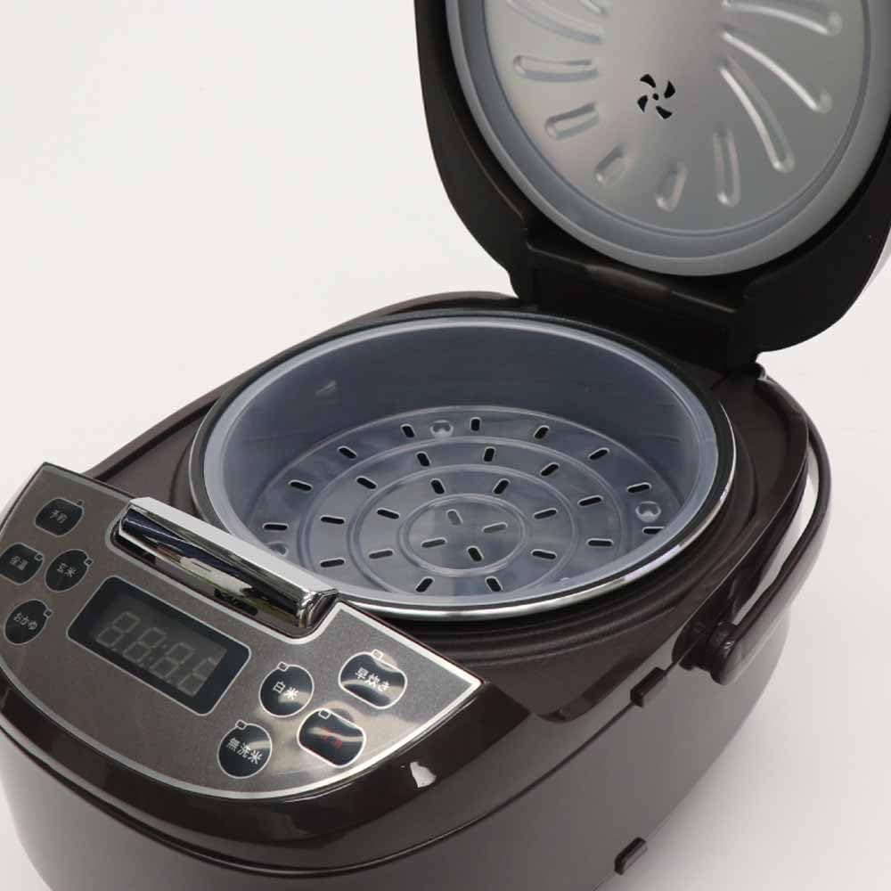 白米・玄米・混合米・おかゆ・早炊き・蒸しの6種類の調理モードを搭載しています。玄米モードは健康志向の方に、混合米モードは雑穀米などを楽しみたい方に便利です。蒸しモードを備えているため、蒸し野菜やシュウマイなど炊飯以外の調理にも対応でき、コンパクトながら多機能な一台です。