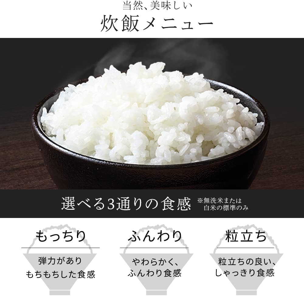 マイコン式のため、IH式や圧力IH式と比較すると火力・炊きムラの面で劣る。もちもち食感や本格的な炊き上がりを求める方にはやや物足りない可能性