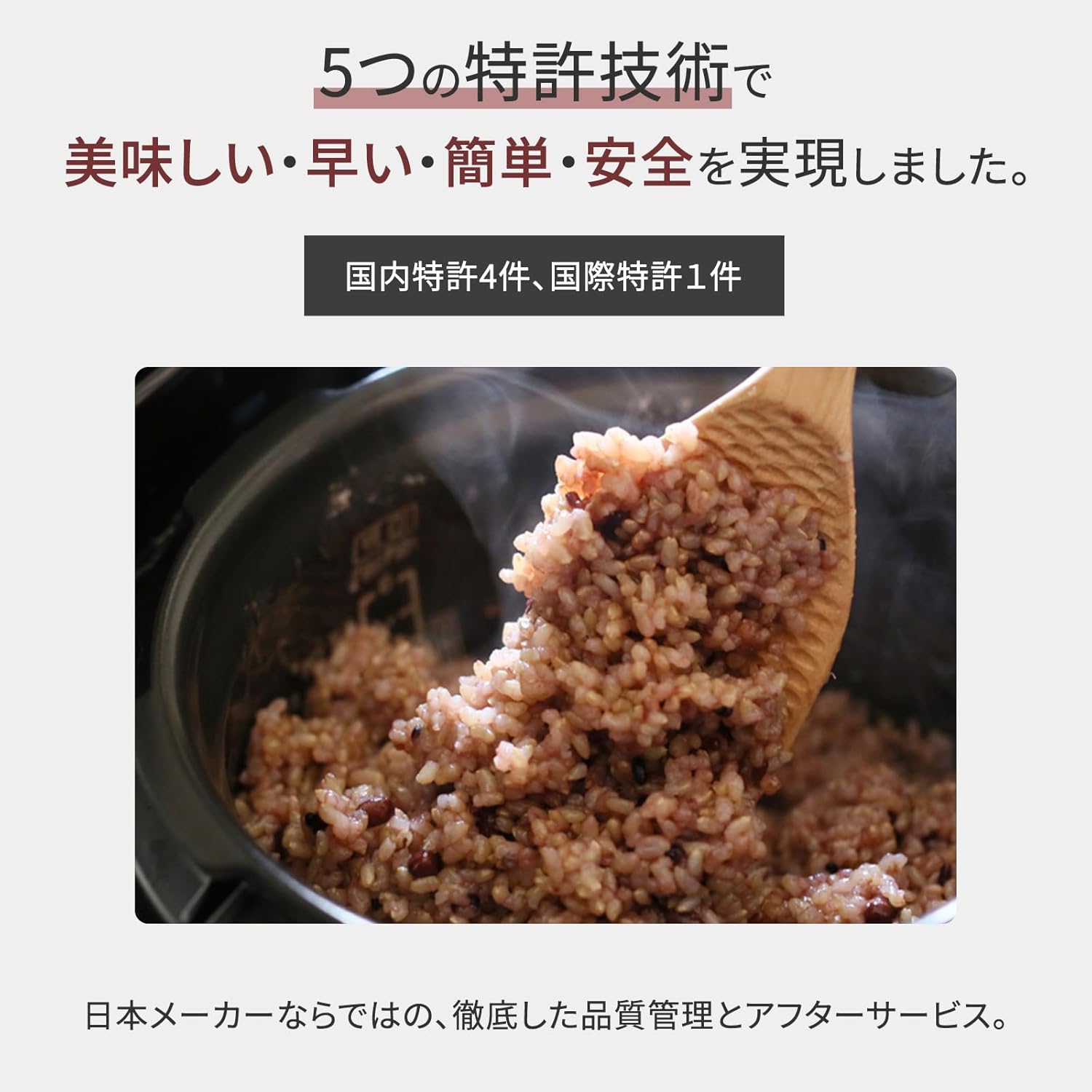 圧力調理機能搭載で、玄米のもちもち食感を実現。口コミでも「日に日にモチモチ感が変わる」と高評価