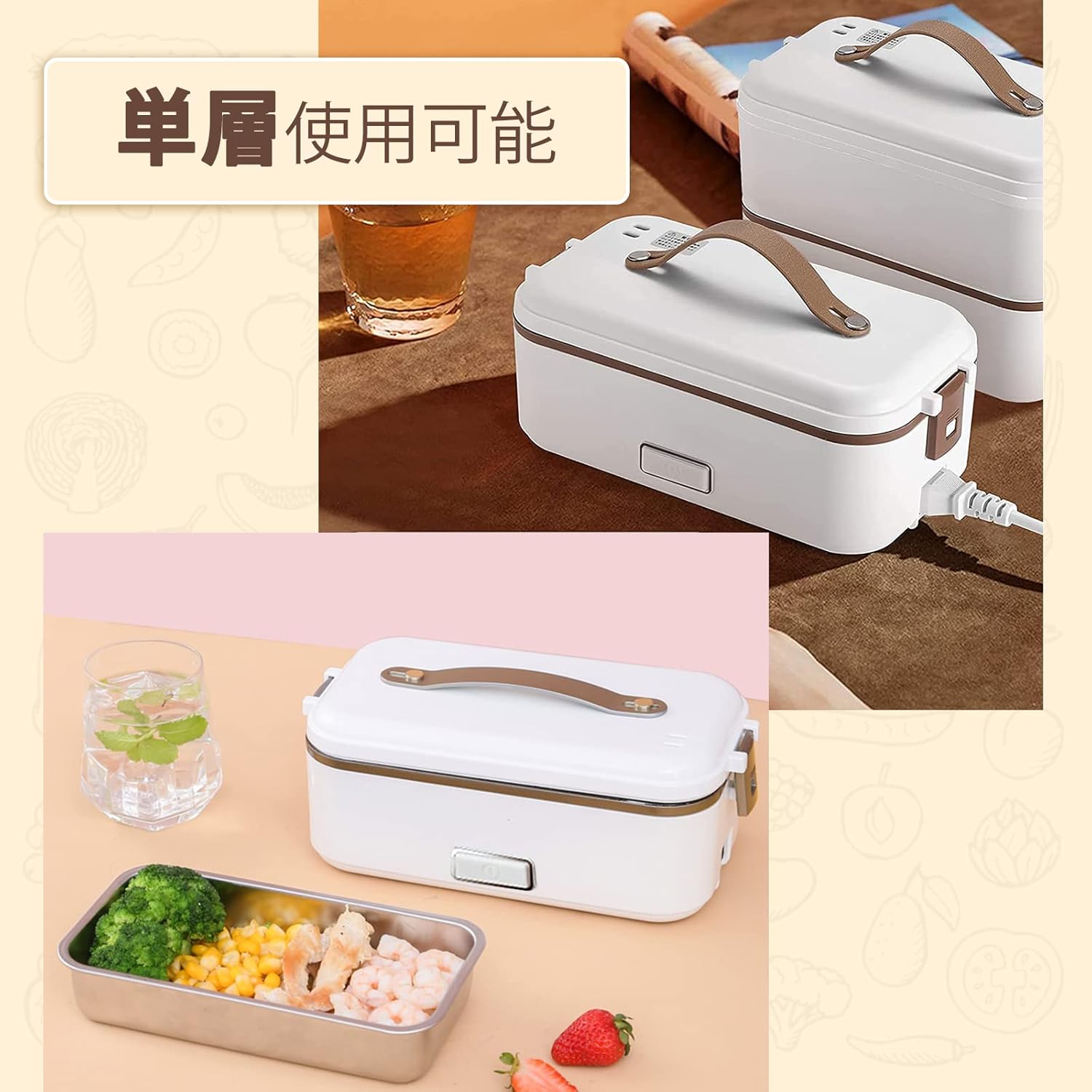 軽量・コンパクトな携帯型炊飯器のため、車中泊での使用に向いています。ポータブル電源やインバーター経由で使用する場合は、消費電力が電源の出力範囲内であることを事前に確認してください。単層使用で蒸し料理だけ作ることも可能です。