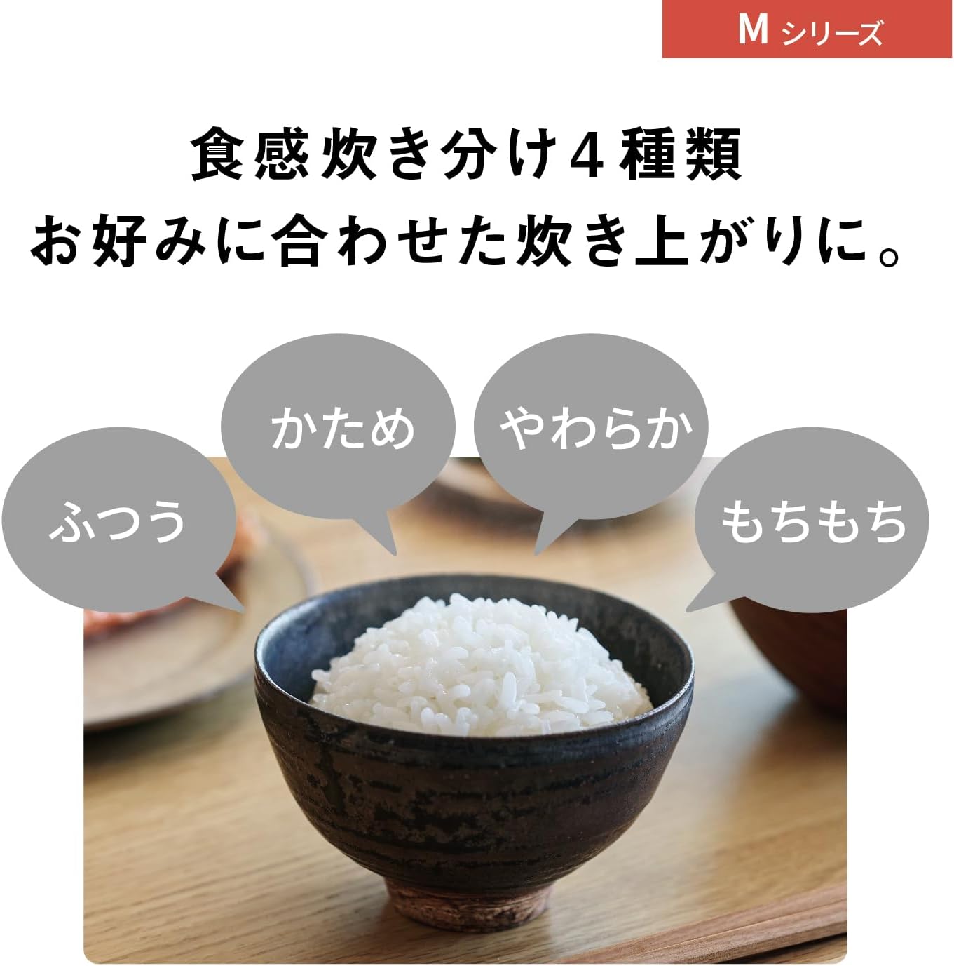 - ✕ もちもち食感を最優先する方(圧力IH式ではないため、圧力1.05気圧以上のモデルと比較すると粘りや甘みの引き出しに差が出る)