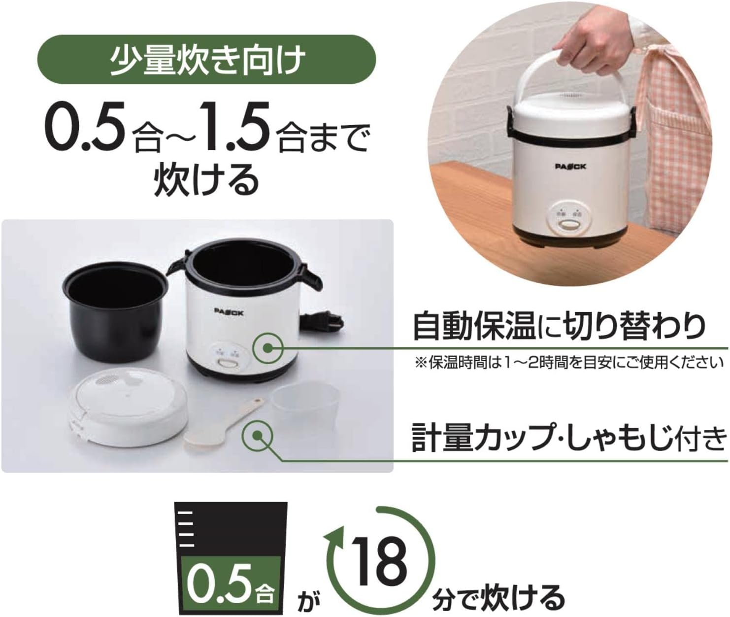 一人暮らしやサブ機として、少量の白米を手軽にコンパクトに炊きたい方に最適
