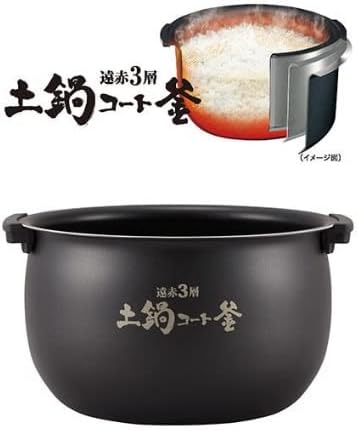 銅入3層遠赤釜に土鍋コーティングを施した独自構造。銅の優れた熱伝導性と遠赤外線効果により、お米の旨みと甘みを引き出す土鍋ごはんのような炊き上がりを実現する。データベース平均の5層に対して3層と少なめだが、土鍋コーティングによる蓄熱効果でカバーしており、タイガーの土鍋炊飯技術のエッセンスを手頃なクラスで体験できる。