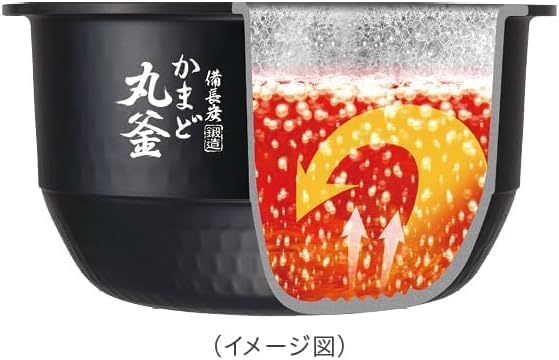 備長炭内釜は遠赤外線放射率が高く、通常のフッ素コーティング釜と比較して熱伝導性に優れ、ムラなく加熱