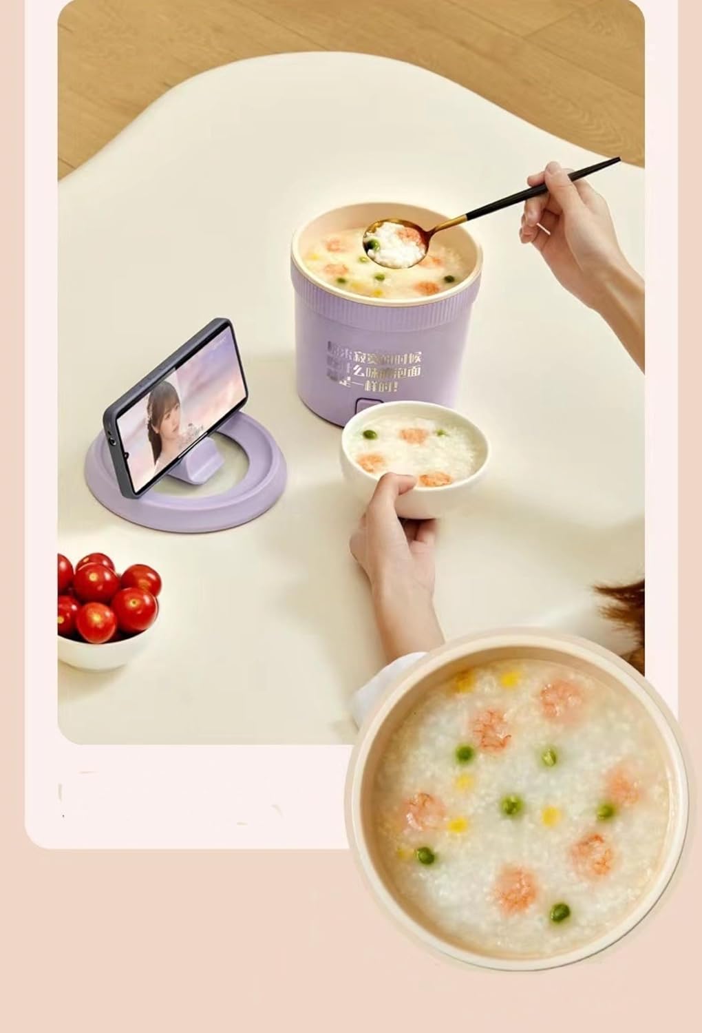 Yuioury 電気鍋は、150×150×150mmの超コンパクトサイズと1Lの小容量が最大の特徴で、一人暮らしの寮や旅行先での簡単な食事作りに特化したマイコン式マルチクッカーです。白米炊飯だけでなく、スープ、おかゆ、蒸し料理、麺類の調理まで1台でこなせるオールインワン設計で、本格的な炊飯器というよりも多機能電気鍋としての活用が向いています。