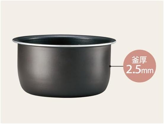 象印マイコン炊飯ジャーの内釜は、熱伝導性を考慮した設計となっています。データベース平均の5層構造・高級素材の内釜と比較するとシンプルな構成ですが、3合炊きの小容量に最適化されたサイズ感で、取り回しが軽く洗いやすいのが特長です。内釜の軽さは日常使いにおいて大きなアドバンテージとなります。