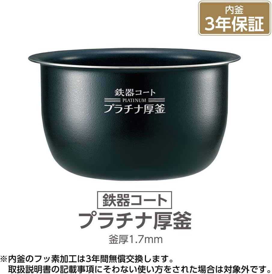 象印独自の内釜を採用しており、IHの高火力を効率よくお米に伝える設計となっています。データベース平均の5層構造と比較した場合の具体的な層数は公開情報が限られますが、内釜に一定の厚みがあり蓄熱性を確保しています。口コミでは内釜の厚みと重さについて意見が分かれており、蓄熱性とのトレードオフとなっています。