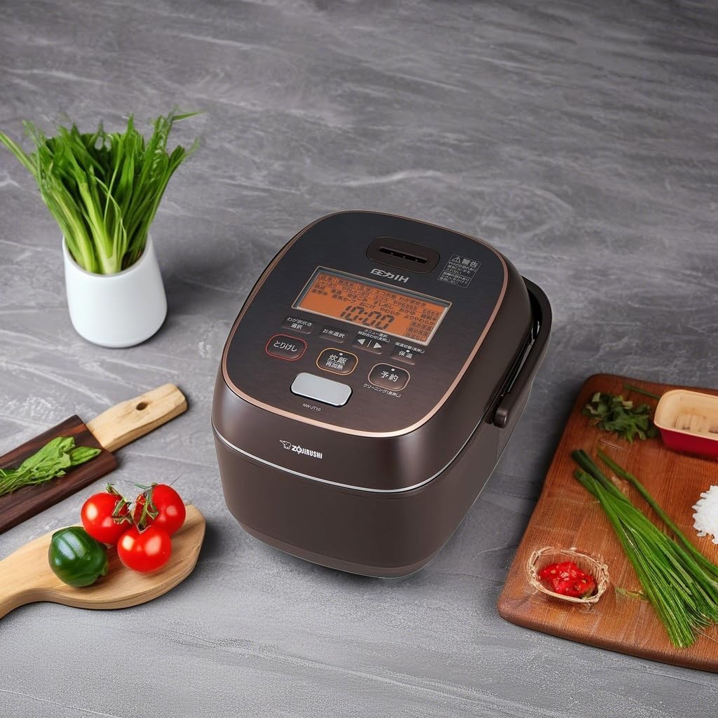 NW-JT10-TAは象印の圧力IHプレミアムラインに位置し、鉄器コート内釜と「我が家炊き」機能を搭載した上位モデルです。同シリーズの下位モデルと比較して、内釜の蓄熱性能と食感カスタマイズ機能が強化されています。もちもちした食感と好みへの細かい調整を重視する方にはNW-JT10が適しています。