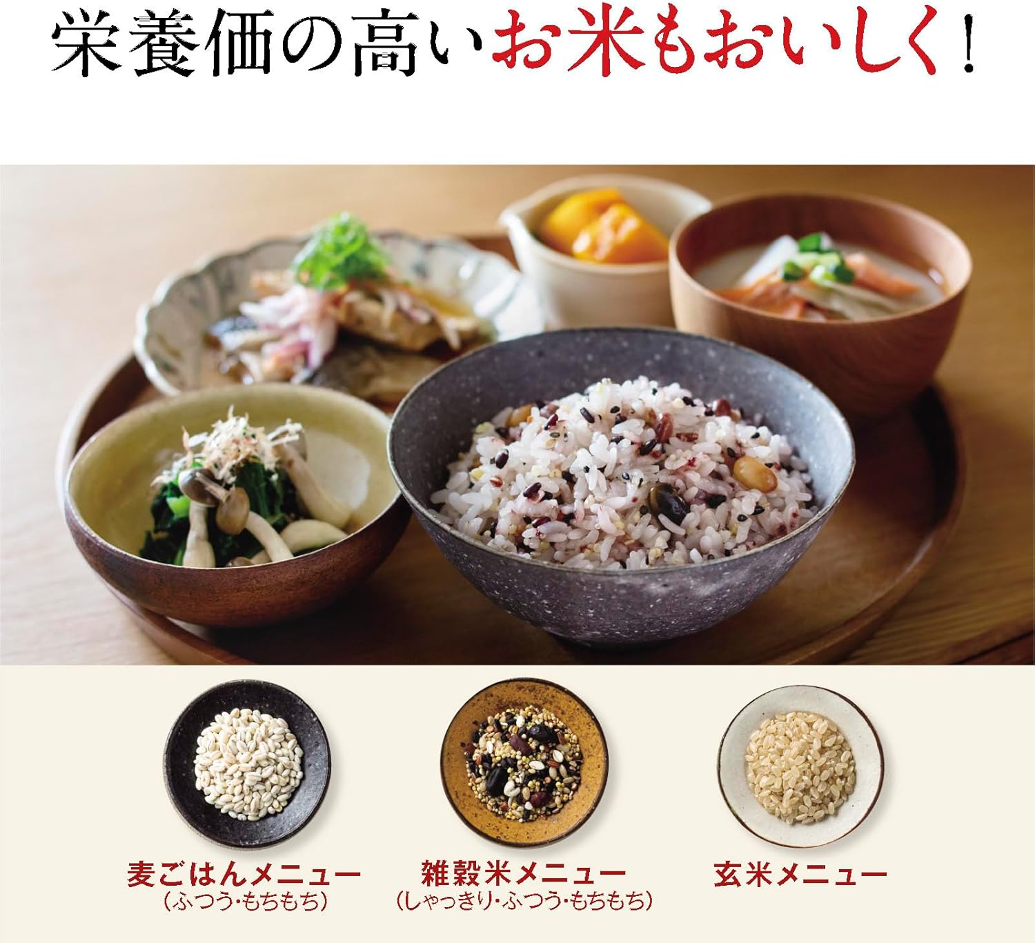 NW-JZ18-BAの仕様では玄米専用モードの搭載が限定的と確認されています。玄米を日常的に炊きたい方は、圧力IH搭載モデルの方が高圧で芯まで柔らかく炊き上げられるため、より適しています。